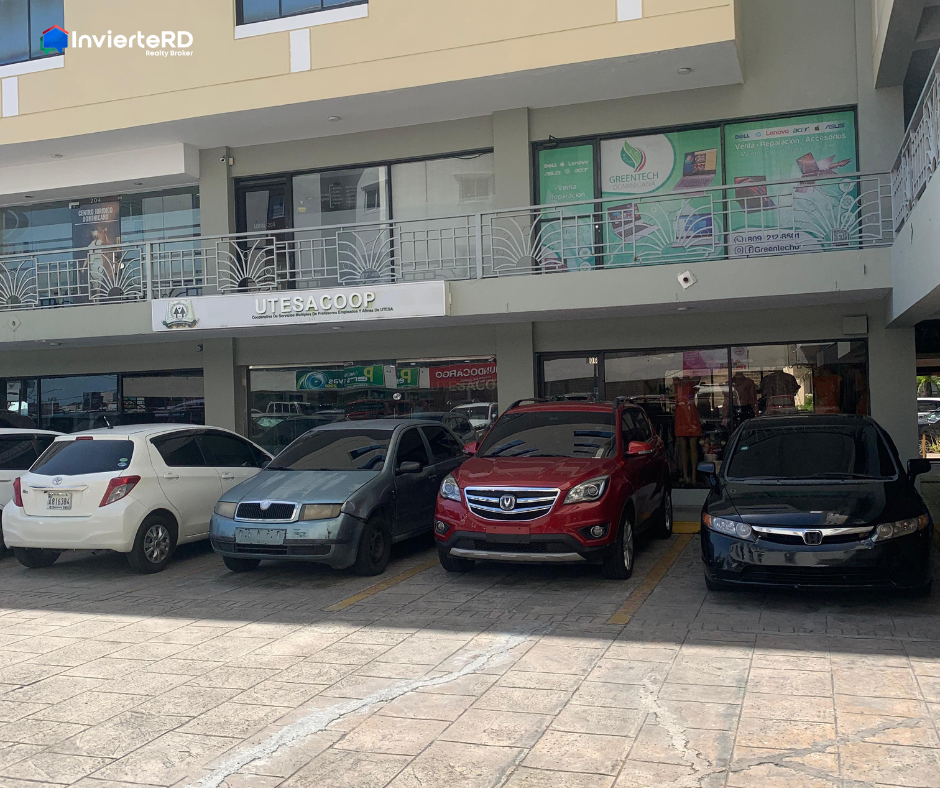 Local comercial céntrico en alquiler, ubicado en plaza comercial en la Av. Máximo Gómez, frente a la Universidad UTESA. La plaza cuenta con estacionamiento común y seguridad 24 horas, además de planta eléctrica y ascensor.